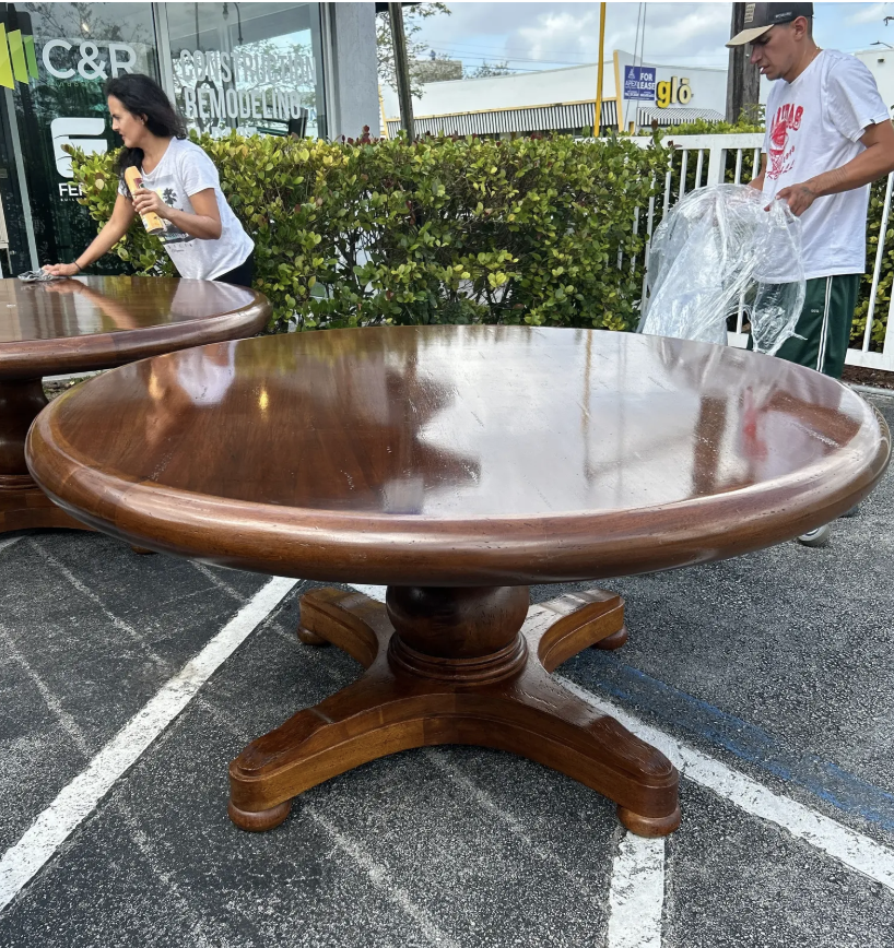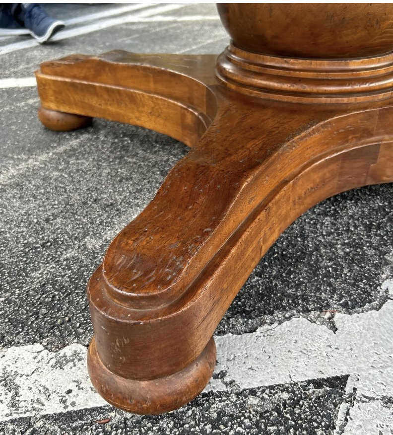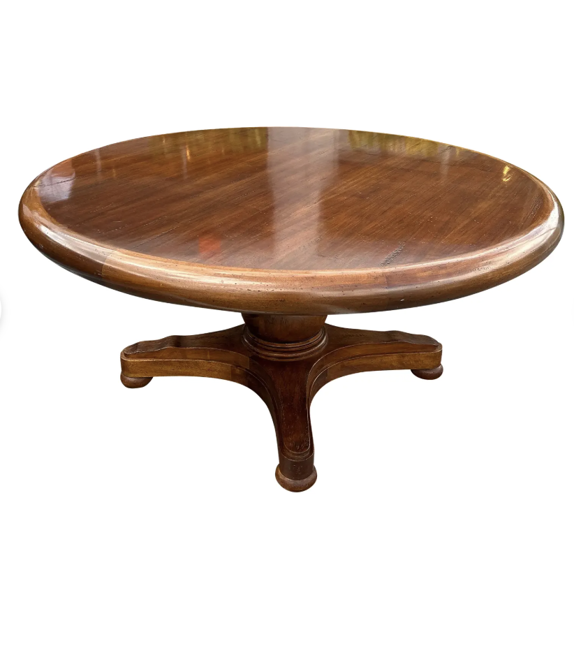 Early 1900s Antique French Round Wood Pedestal Dining Table